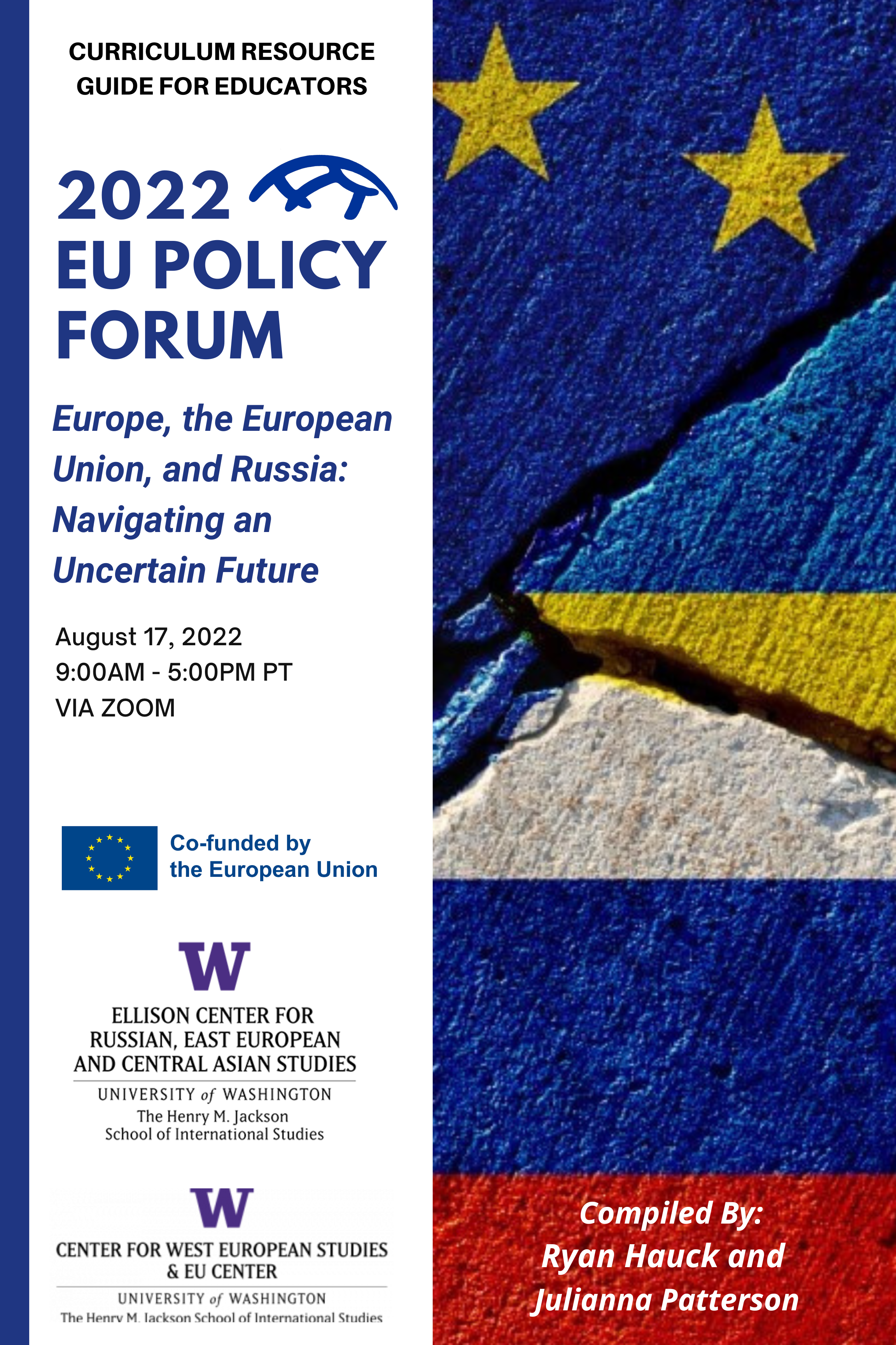 All participants will receive a supplemental curriculum resource guide to further explore the workshop's themes. Check out the 2022 and 2023 EU Policy Forum supplemental curriculum resource guides for additional insights and materials centering the EU!