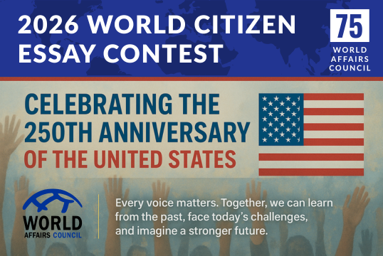 Since 1951, the World Affairs Council has worked to bring people together, strengthen understanding across differences, and prepare individuals for an interconnected world. Over the past 75 years, democracy has flourished in some places while facing challenges in others. In every community, democratic values are shaped by how people participate, resolve disagreements, and build trust with one another.