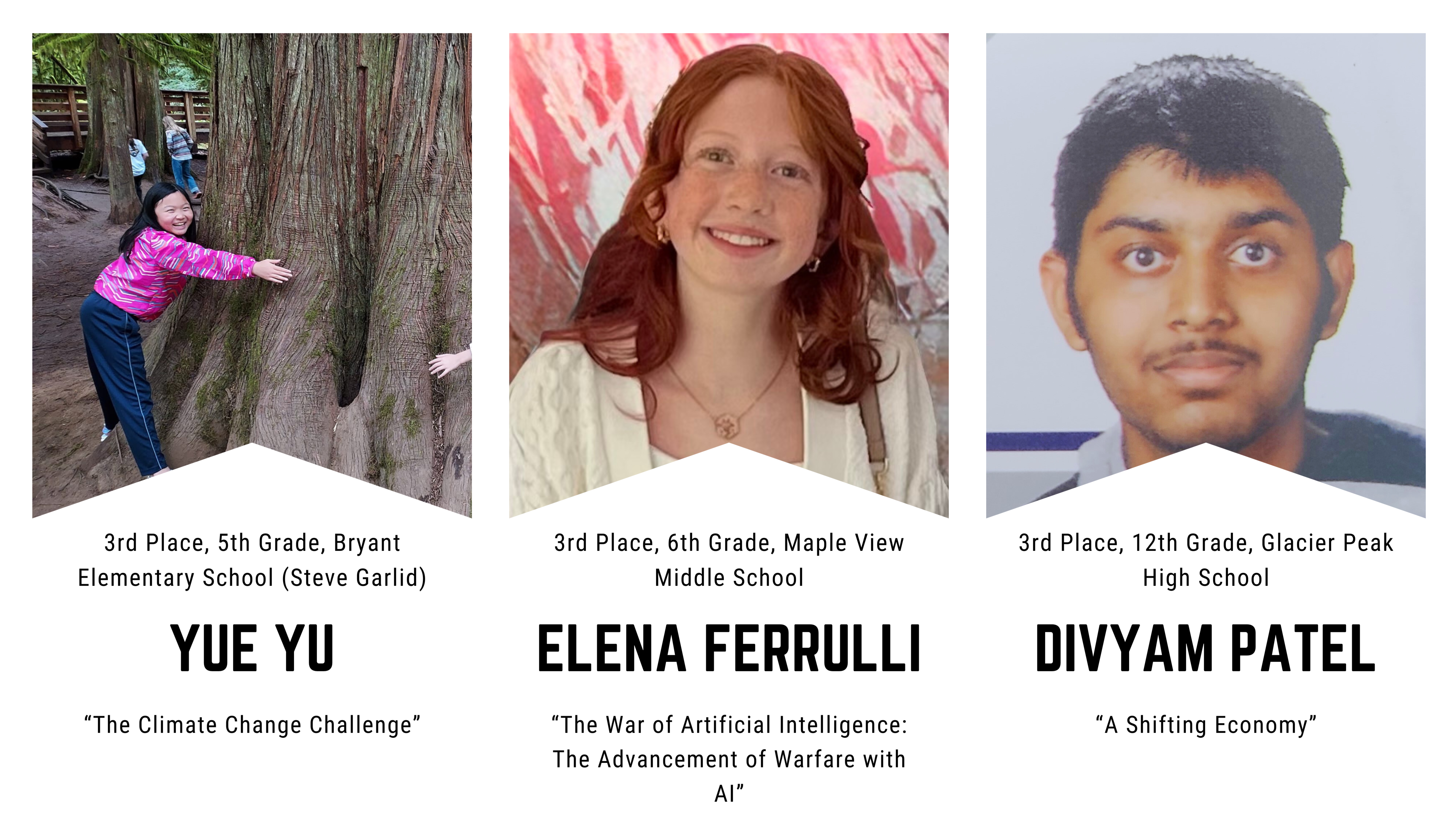 At a time of profound global shifts—technological, environmental, and societal—the urgency to nurture the next generation of critical thinkers, compassionate leaders, and creative problem-solvers has never been greater. This year, the World Affairs Council’s Global Classroom program invited youth across Washington State to participate in the 27th Annual World Citizen Essay Contest (WCEC) and reflect on pressing global shifts—from climate change and AI to aging populations and the future of work. Students were asked to examine both the challenges and opportunities these shifts present and propose how a country of their choice might prepare its citizens to thrive. Over 400 students representing 20 schools across 15 school districts rose to the occasion, submitting essays that were insightful, imaginative, and full of heart—demonstrating the vision and empathy young people bring to building a more just and sustainable world.