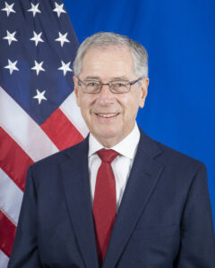 As U.S. Ambassador to the EU he focused primarily on supporting the allied response to the Russian invasion of Ukraine including extensive work on export controls, sanctions and developing innovative ways in which the US/EU could finance the war. He resolved vexing trade disputes on privacy and climate tech and worked in three successful summits to develop common approaches not only on the war and trade but on countering the People’s Republic of China and forging a common US/EU approach to the Gaza war.