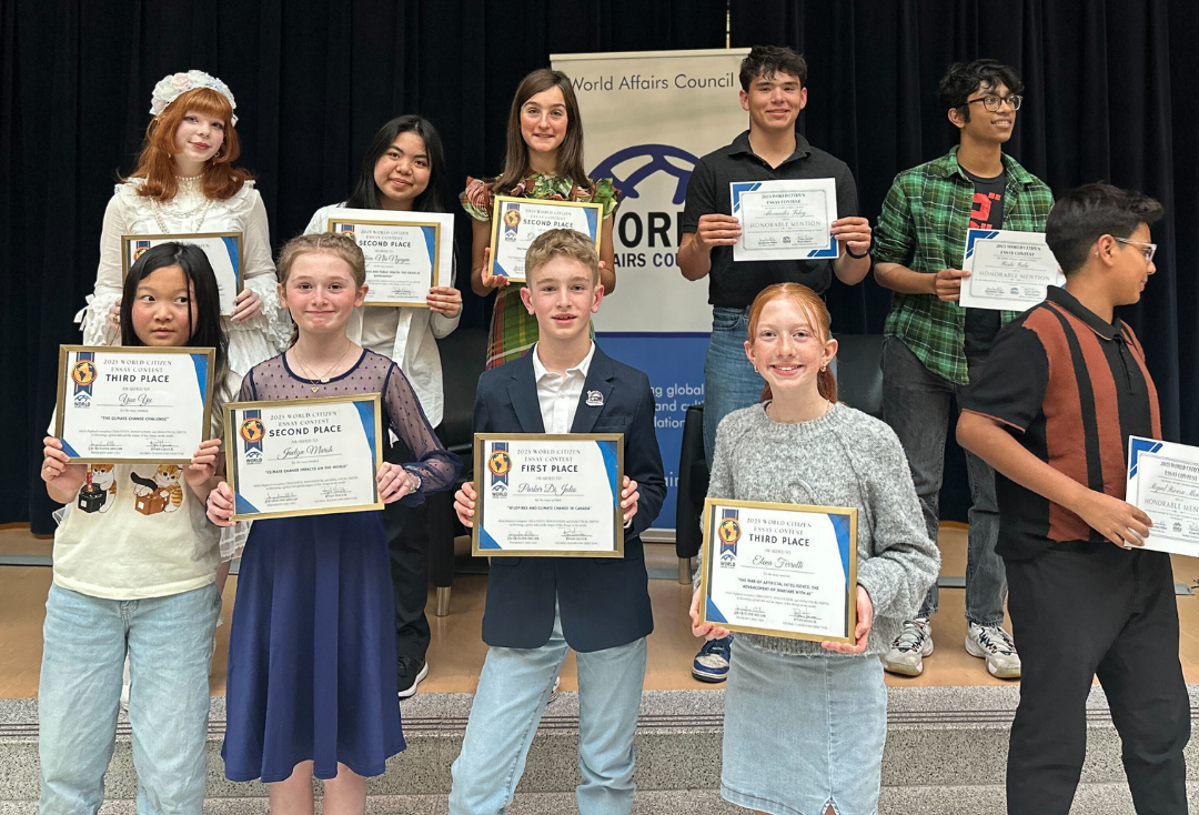 Each spring, the World Affairs Council hosts the WCEC for third through twelfth graders. The goal of the contest is to promote discussion among students, teachers, families, and community members about the ways that individuals can affect positive change in the global community. The contest lends the opportunity for students to engage in conversations about critical world issues with their peers, teachers, and families and allows them to gain confidence in expressing their thoughts in writing by submitting their work to a panel of community judges from both the business and education communities. Many teachers use the WCEC as a way to engage their students in real life global issues.